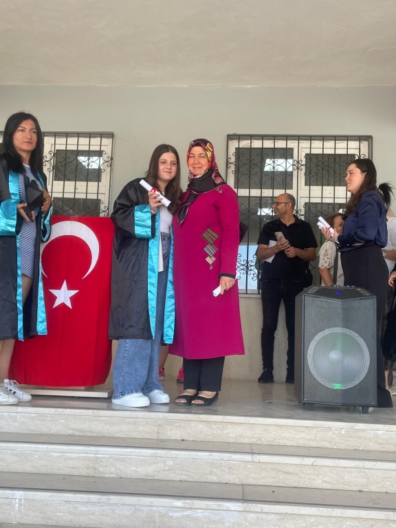 Mezuniyet programı saygı duruşu ve İstiklal Marşı ile başladı. .Mezuniyet konuşmalarının ardından okul birincisine ödülünü okul müdürümüz Sefer BULĞU takdim etti.